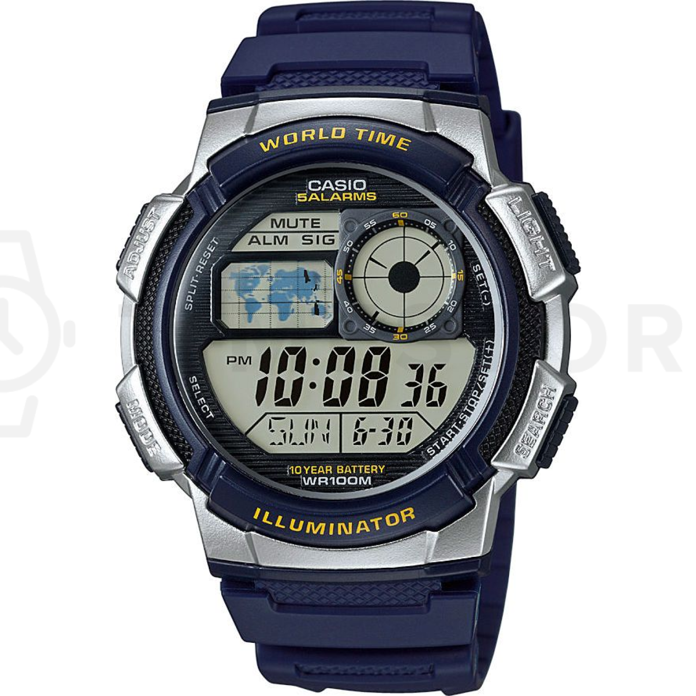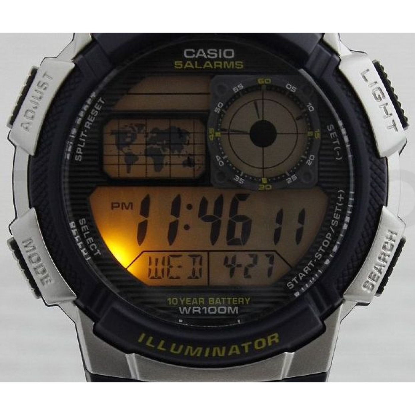 - Osvětlení, Alarm, Stopky, 24 hodinový subciferník, Světový čas, Věčný kalendář