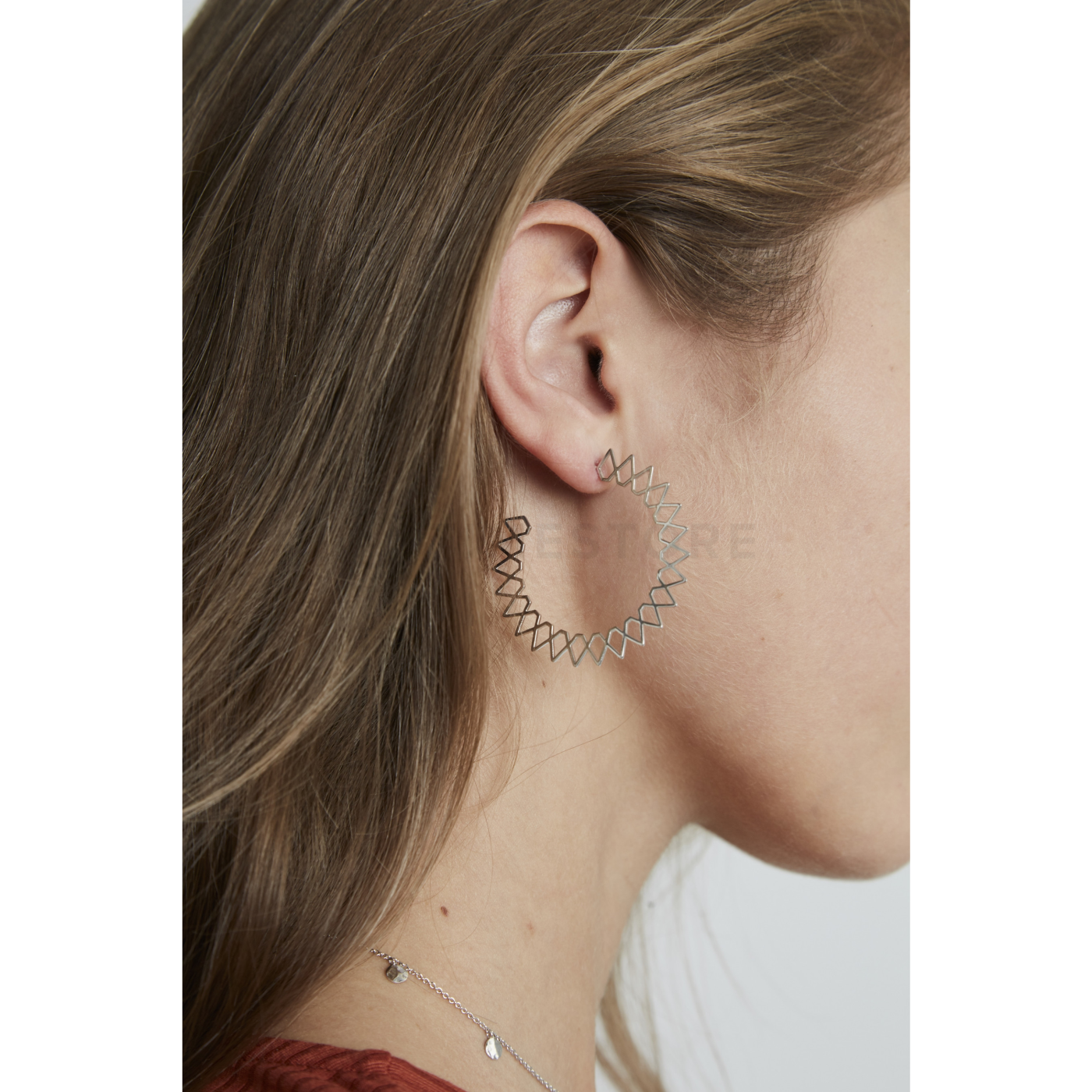Nepřehlédnutelné náušnice jsou jisto-jistě brilantním módním doplněkem v outfitu každé slečny, která chce obohatit svůj outfit. Zvolené náušnice zpestřuje velmi moderní stříbrná barva, přičemž hlavním materiálem je nerezová ocel. Náušnice mají velikost 45 mm a jak jste si mohli všimnout, povrch je lesklý. Tyto náušnice budou stoprocentně perfektním výběrem, pokud máte zájem o nádherný kousek s perfektním zpracováním a zároveň za perfektní cenu.