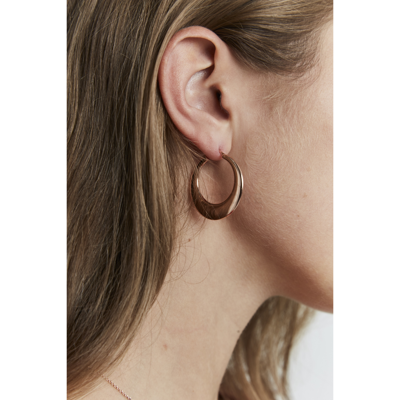 Krásné náušnice jsou bez zbytečných slov nepostradatelným módním doplněkem ve sbírce každé moderní slečny, která má ráda módu. Povrch vybraných náušnic zbarvuje populární růžově zlatá barva, přičemž ústředním materiálem je nerezová ocel. Náušnice jsou velké 31 mm a jak jste už asi postřehli, povrch těchto náušnic je lesklý. Nemusíte se bát, tyto prvotřídní náušnice od Rosefield vám bude každá z kamarádek závidět.
