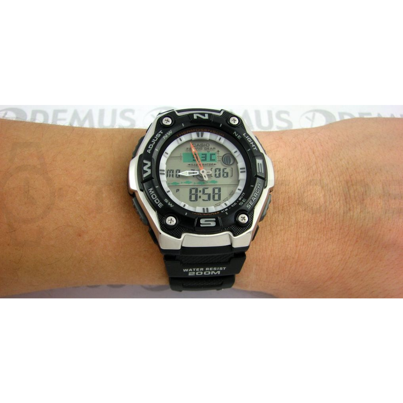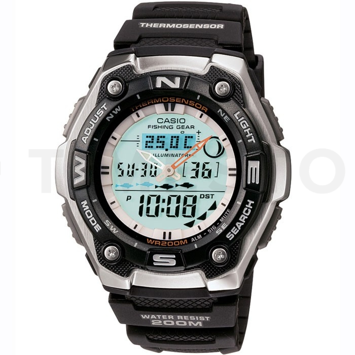 - Chronograph, Alarm, Osvětlení, Fáze měsíce, Věčný kalendář, Teploměr