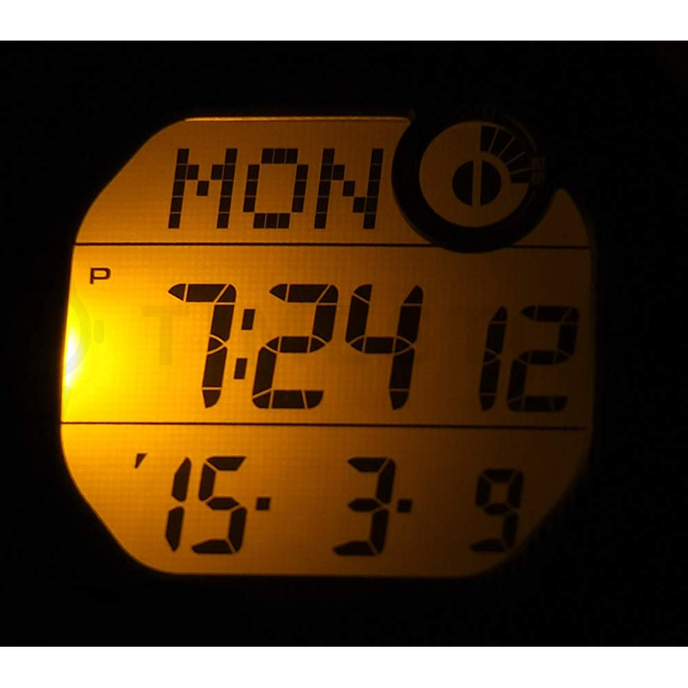 - Alarm, Věčný kalendář, Stopky, Duální čas, Ukazatel dní v týdnu, Chronograph, Osvětlení, 24 hodinový subciferník