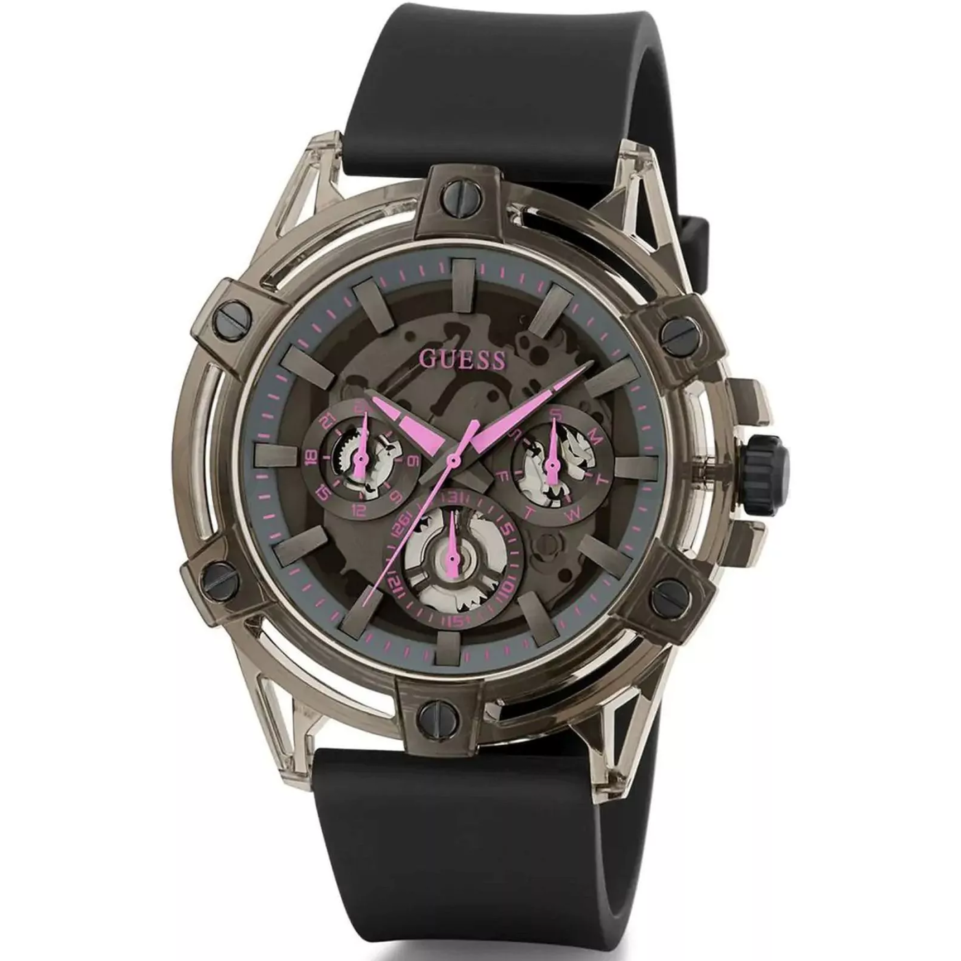 Mezi hodinkami Guess naleznete nejen jednoduché fashion kousky, ale také modely, které disponují různými přídavnými funkcemi – například ukazatelem data, 24-hodinovým subciferníkem, luminiscenčními ručičkami, krokoměrem, možností stahování aplikací, ovládáním hlasem, sledováním srdeční aktivity, smart notifikace. A když jde o jejich design, u mnoha dámských modelů se můžete setkat se Swarovski kamínky.