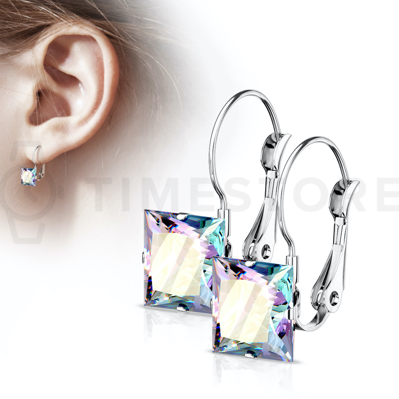 Náušnice z chirurgické oceli s barevnými čtvercovými zirkony