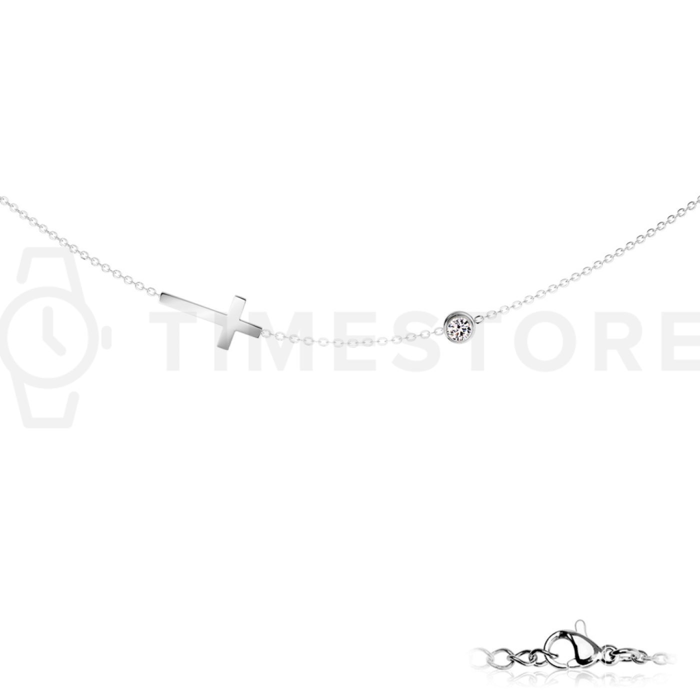 Ocelový náhrdelník s přívěskem kříže a kubickými zirkony