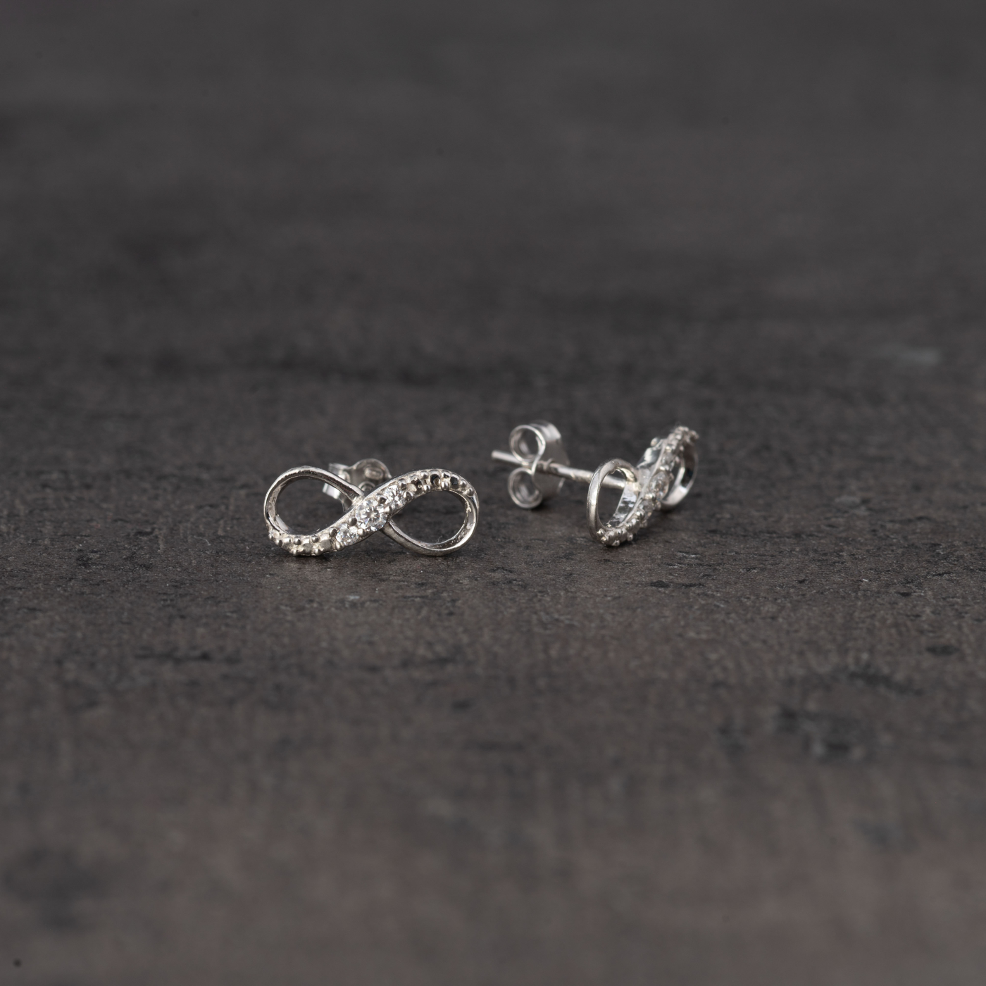Stříbrné peckové náušnice, symbol nekonečna